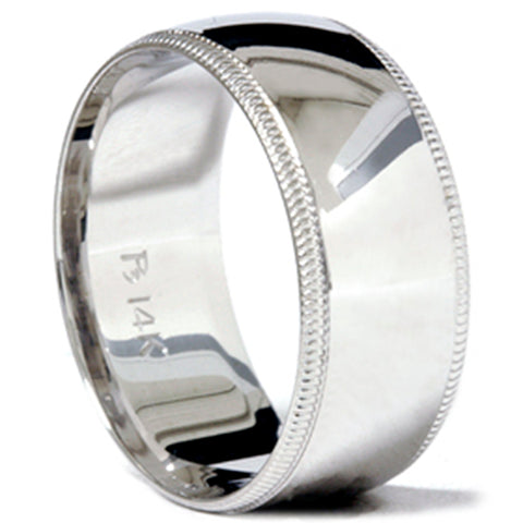 9mm Milgrain Mens Wedding Band 14K White Gold