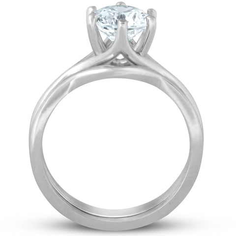 1 Ct Round Diamond Engagement Ring Wedding Plain Band Set 14k White Gold