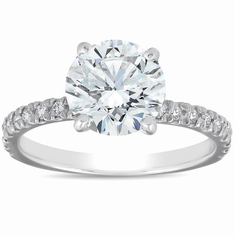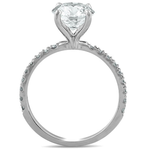 2 1/3 Ct Diamond Solitaire Engagement Ring 14k White French Pave Set