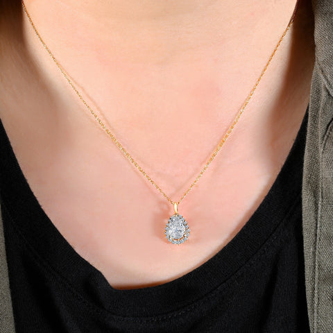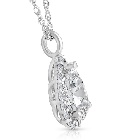 2 1/6 Pear Shape Moissanite & Lab Grown Diamond Halo Pendant 14k Gold Necklace