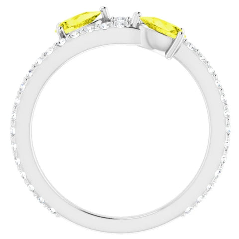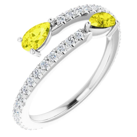 5/8 Ct Fancy Yellow Pear Shape Diamond 2-Stone By Pass Ring Lab Grown White Gold
