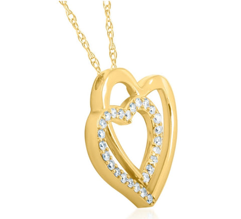Womens 1/4ct Diamond Heart Shape Pendant 10K Yellow Gold 3/4" Tall