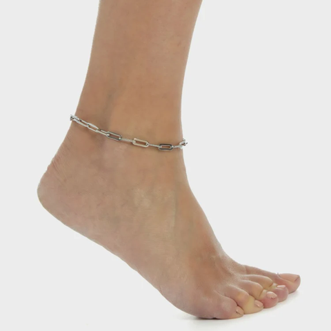 Yasmine 6mm Paperclip Anklet Silver Plated 10" Length